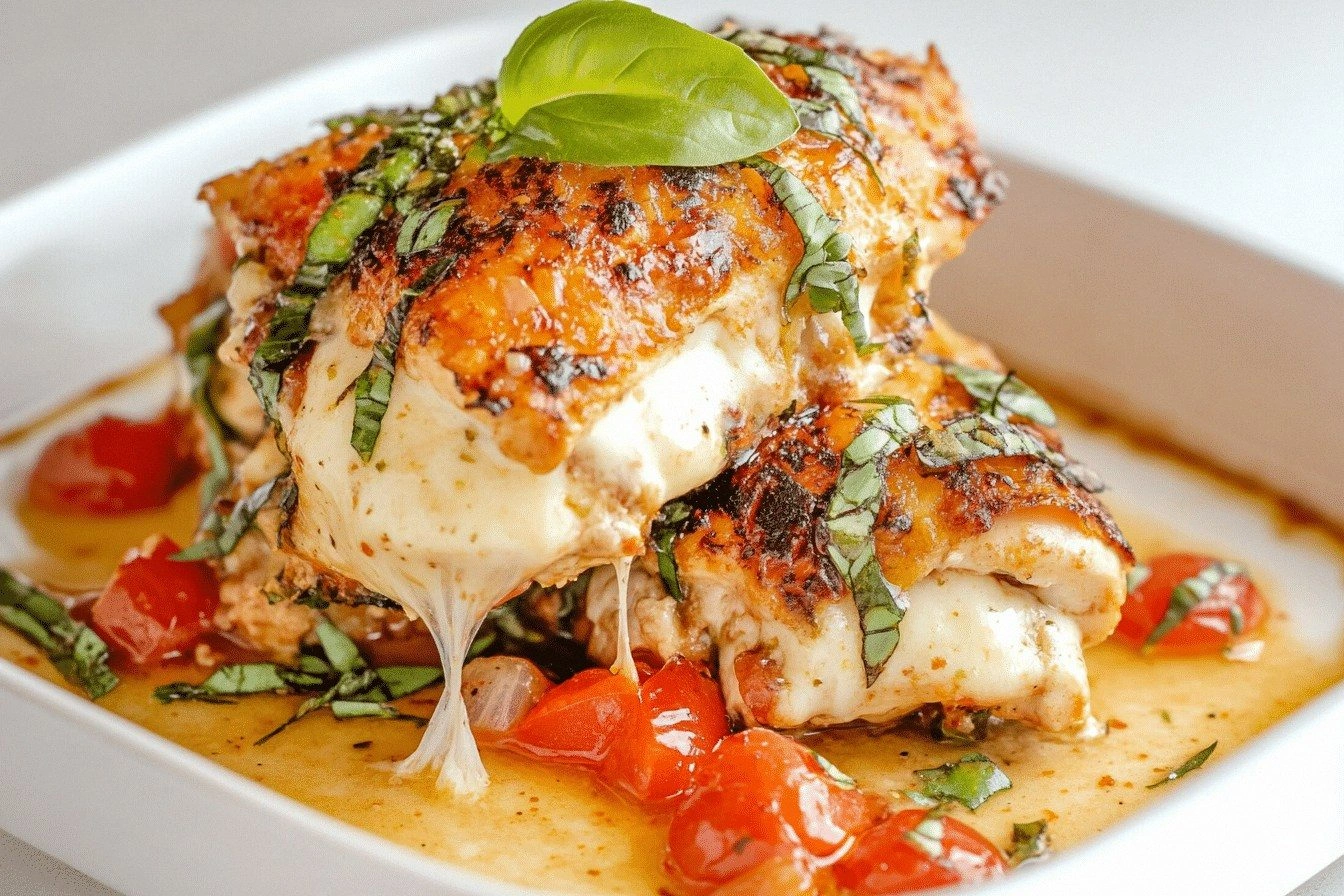 Picture this: the aroma of fresh basil and sun‑kissed tomatoes flooding the kitchen, the sizzle of garlic in olive oil that sounds like a tiny orchestra, and the sight of golden, bubbling cheese that invites a forkful. The texture is a delightful contrast—crisp, caramelized edges meet a tender, juicy chicken core, while a whisper of toasted breadcrumbs adds a satisfying crunch. The sound of the oven timer ticking, the feel of the warm steam curling up from the baking dish, and the anticipation of the first bite create a sensory experience that feels like a culinary hug. I dared you to taste this and not go back for seconds.