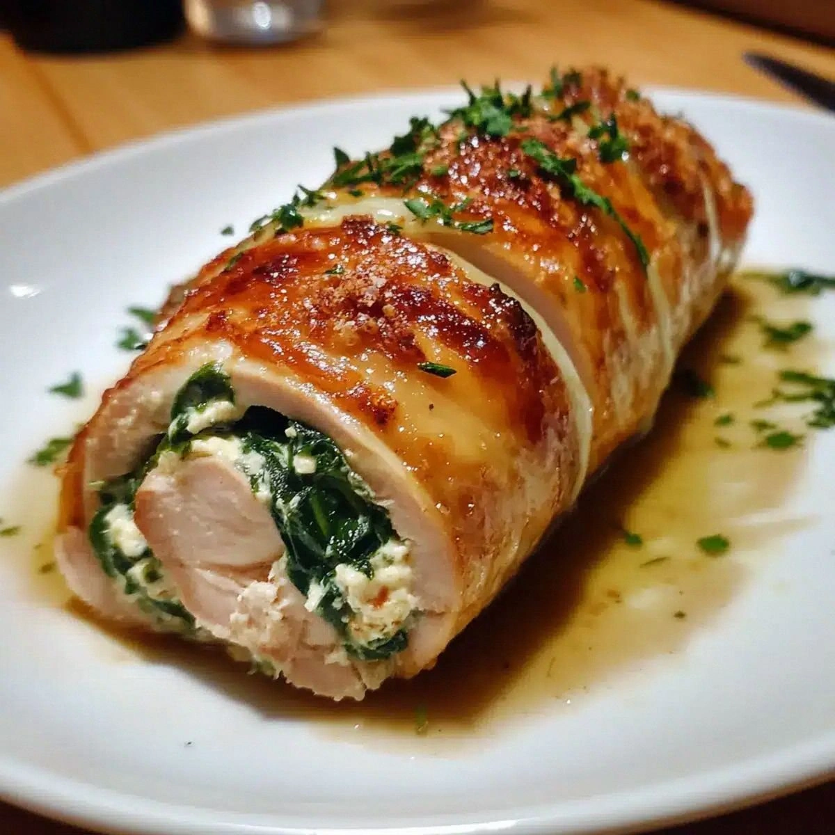 Picture this: a plate of golden, slightly crisped rolls, the scent of garlic and herbs rising like a warm hug, and the sight of spinach glistening with a touch of cheese. The first bite melts your tongue, the ricotta’s creaminess mingles with the nutty spinach, and the subtle Parmesan crunch adds that final flourish. The sound of the knife slicing through the tender turkey is a satisfying snap, and the texture is a delightful contrast of silky filling and firm outer layer. Your senses dance, and you can’t help but smile at the simple elegance of this dish.